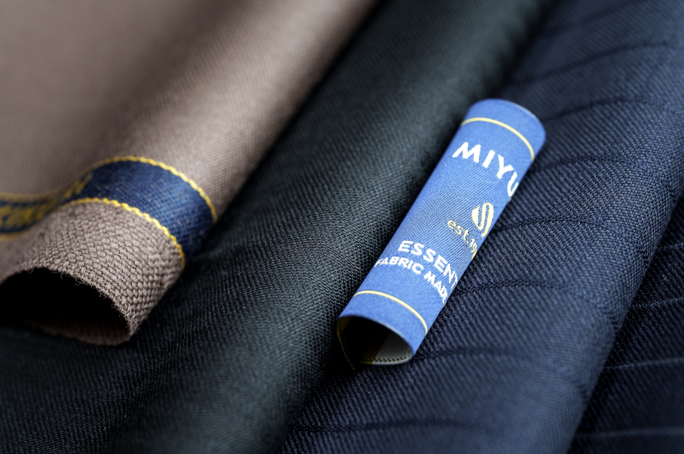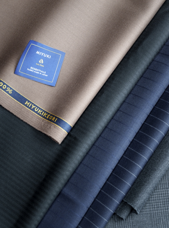 実用的で高品質なものづくりを追求した、メンズビジネスウエア向けコレクション MIYUKI ESSENTIALS。ベーシックラインは、日本の気候や風土に適した安定感のあるスーツ地用途として、日本独自で発展し古くから使われてきた20.5μの2/60番手を使用。緯糸は単糸にすることで目付260gといわゆる中肉で、オールシーズン着用できるスーツに仕上げました。適度なハリ感、光沢感があり、仕立て映え、耐久性に優れ、通年での着用に適しており、ビジネスツールとして信頼できる品質です。