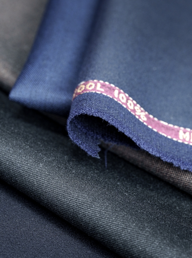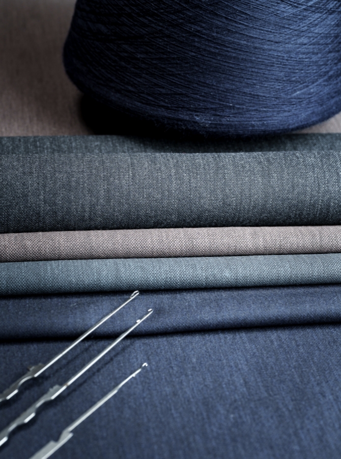 産地交流生地:滋賀県姉川にある国産シルク糸をウールにブレンド。ナチュラルな光沢感が特徴。ウール82%シルク12%